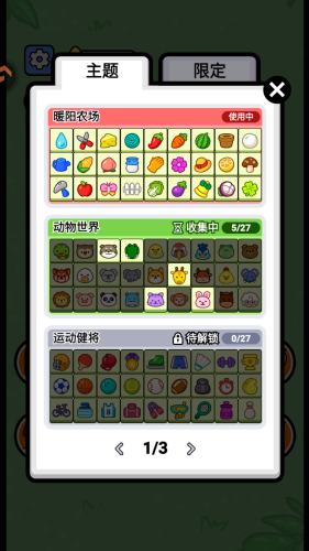 3、提供多种精美主题供玩家自由切换,如活泼的水果、可爱的动物、温馨的家具等,不同主题带来截然不同的视觉氛围与新鲜感。