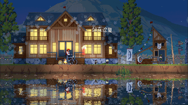 1、80年代复古像素美学复刻,霓虹光影与木质建筑构建怀旧视觉符号。