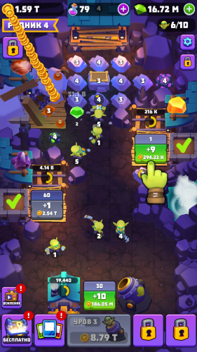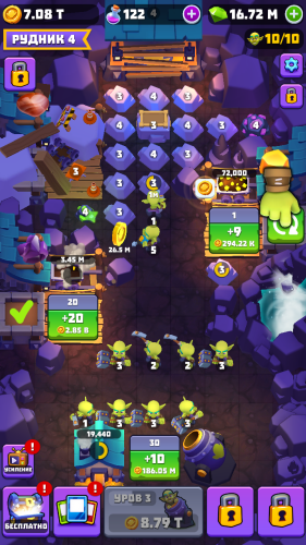 6、玩家可以根据自己的策略思路,将基础哥布林合成为更强大的高级单位。同时通过解锁全新的矿井设施,持续提升黄金产量,实现经营规模的不断扩大。