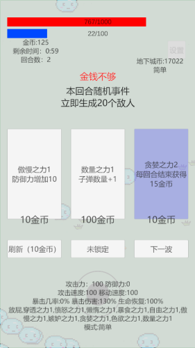3、通过击败场上史莱姆获取金币用来在结束回合的时候购买卡牌,同时也会获得地下城币。