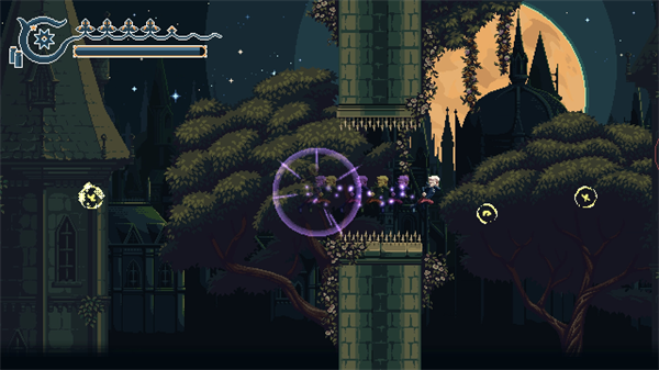 像素画质不错,一旦你走到离开第一个区域,就能欣赏到一些很棒的风景。不过,起始区域看起来有些单调。剧情上是因为这里是神庙周围的原始区域,随着你离开寺庙,会接触到一个更加多彩的世界,但这也意味着你从一开始就被困在游戏中视觉上最不吸引人的区域,没有其他选择,直到解锁新地点。