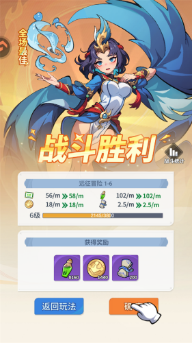 1、肉鸽爬塔横扫所有敌人,保证基本的战力水平就能解决所有敌人,基本不会出现过于困难的情况,非常有趣。