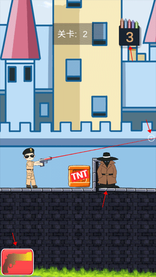 2、首先确认自己枪里有几颗子弹,然后瞄准位置,等位置弄好以后就可以点击左下角的枪支图标用来开枪,打中敌人。