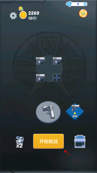 1、打开游戏进入主界面,先用金币购买足够的枪支,然后点击开始挑战。