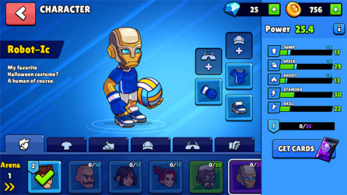 排球竞技场破解版最新版是一款好玩的体育竞技类游戏,玩家将成为一名排球运动员在赛场进行1v1形式的排球对决,游戏操作简单易上手,新手也能轻松开始比赛,你需要控制角色前后移动,通过跳跃、扑球、扣杀等一系列动作完成得分。游戏中提供多种角色服装和形象,全部可以免费获得,玩家只需收集足够道具,就能兑换这些外观,不同服装还会提升角色能力,比如增加跳跃高度或移动速度,帮助玩家更好地取胜,喜欢的小伙伴快快下载体验吧。
