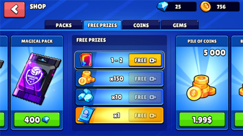 6、FREE PRIZES是免费奖品,玩家点击可以跳转至查看游戏内的免费商品活动,可以在此界面获得免费道具。