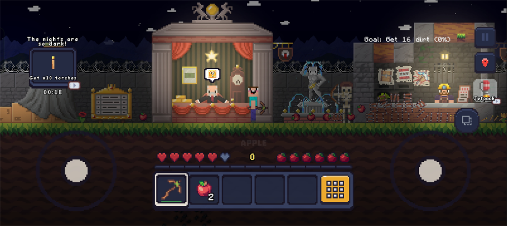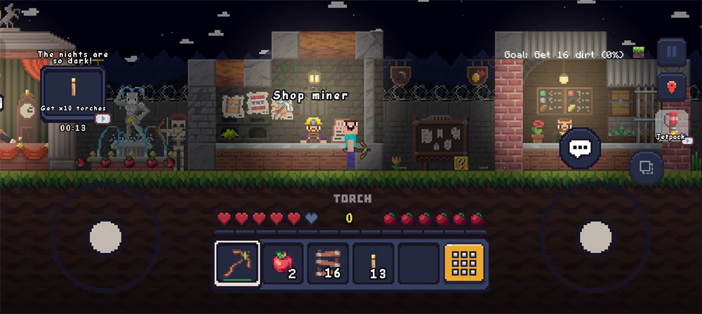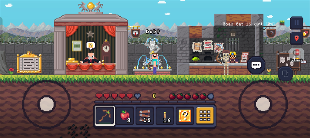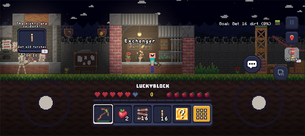 1、像素画风都贱出来的游戏画面,像素方块呈现出来了环境。