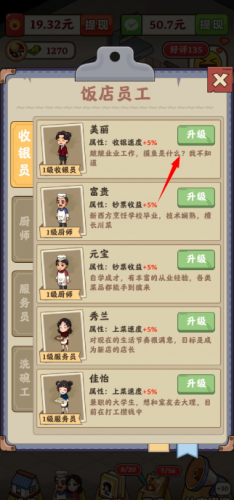 3、然后就能升级对应的员工,提升他们的工作能力了。