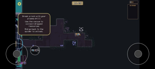 1、采掘:在墙的各处深入挖掘。搜寻用于升级的资源和技术,探索矿洞中的全新生物群系——不过别忘了怪物来袭时要及时返回你的机械蜘蛛。