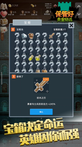 3、宝箱永久成长:地牢重生奖励宝箱,解锁属性加成,让你的英雄无限进化。