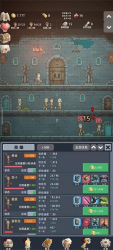 2、点击下方的英雄按钮可以对角色进行升级,每次升级都会消耗一定数量的金币。