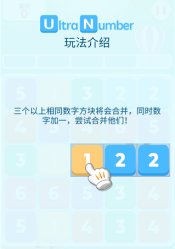 2、当三个或者三个以上的相同数字出现时就会合并,合成成新的数字,新的数字会在原来数字的基础上加1。