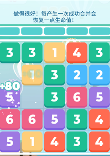 4、每局你会有5条生命,每提高数字方块一次就会消耗一次生命,如果成功合成一次就会恢复一次生命。