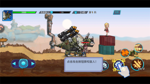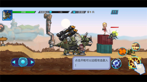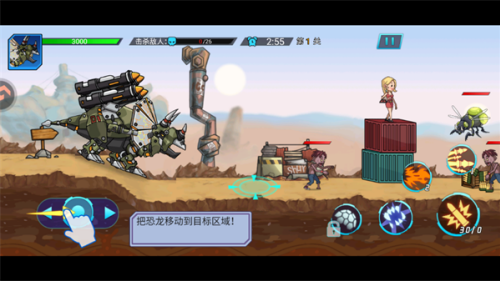 4、攻击场景中血量较低的敌人,快速清理杂兵后,集中火力对付高攻防的精英机械恐龙,提升效率。