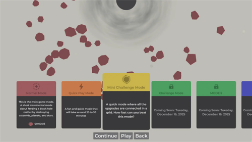 4、黑洞自动吸引邻近小行星,无需手动操作,系统实时计算吞噬收益。
