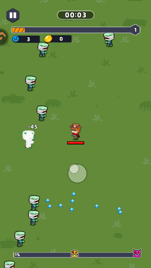 2、通过指尖滑动操控角色移动轨迹,途中收集经验资源,同时击败遭遇的敌人。