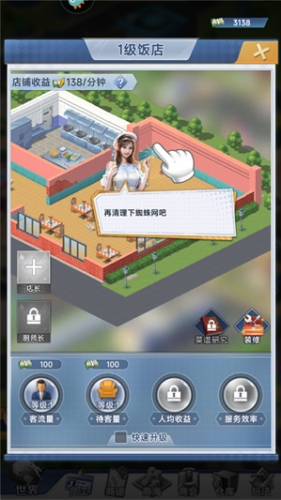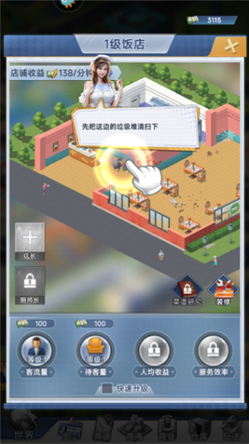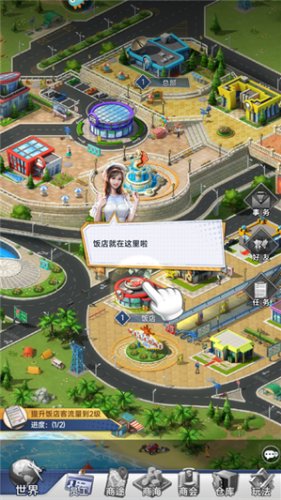 3、进入之后第一个任务就是提升饭店客流量,点击“饭店”。