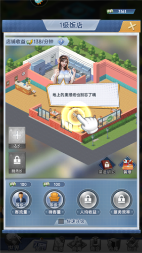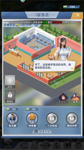 2、游戏玩法简单很容易上手,玩家将利用偶然获得的启动资金独立创业拼搏,开启一段逆袭之旅,还有很多的休闲体验,都是可以等待玩家的解锁,打造属于自己的全新人生。