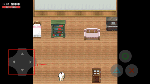 3、点击屏幕左下方按钮,控制懒羊羊移动至门口。