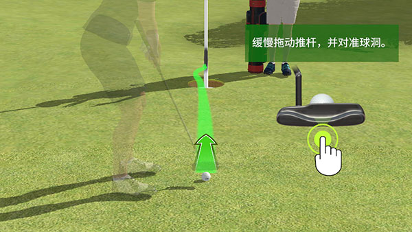 4、然后会有提示你进行补杆,在缓慢拖动推杆,对准就可以进洞了