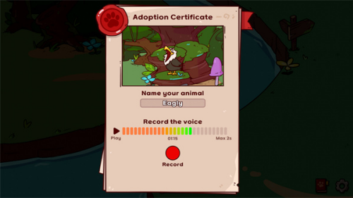 3、每个领养来的动物你都可以为它命名并录下你的声音作为它的叫声。