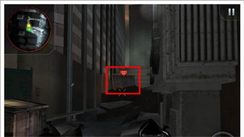 3、通过障碍2后,到达此处地形时,先持枪瞄准红色标示,开枪击落箱子,即可顺利通过障碍。