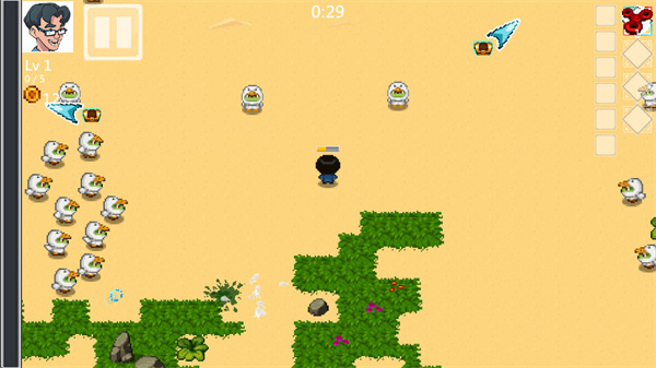 2、让自己生存到20分钟,越到后期,怪物就越多,满屏都是。