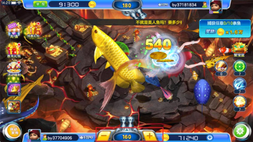 2、花样鱼群,特色渔场:梦幻海底生动场景,特效高能技能炫酷。畅快攻击让你劲爽过瘾,万炮倍率无限爆金,还有各种玩法等你一一解锁,体验各式闯关乐趣,领略不一样的新奇玩法。