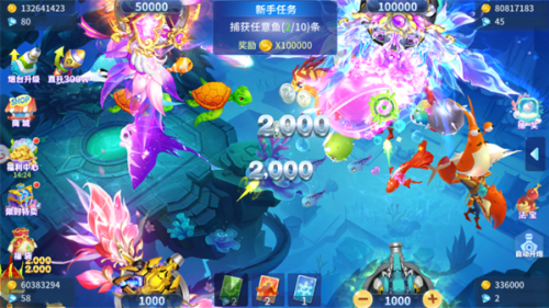 2、最爽快的千炮多人对战。最高开启千炮开打,真人联网,看谁先打到鱼王。