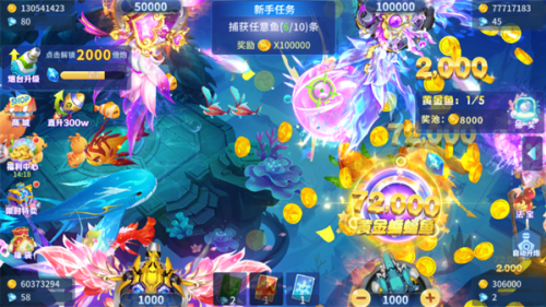 多样劲爽酷炫炮台皮肤,子弹爆炸特效,还有多样的华丽翅膀,让您在捕鱼的世界也能惊艳众人,震撼全场。
