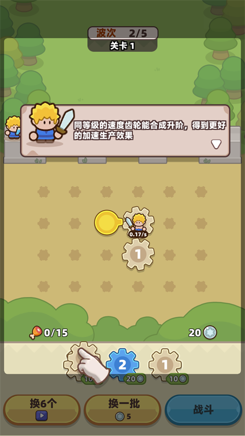 4、齿轮合成进化系统支持同等级兵种合并,提升召唤速度或士兵属性形成质变。