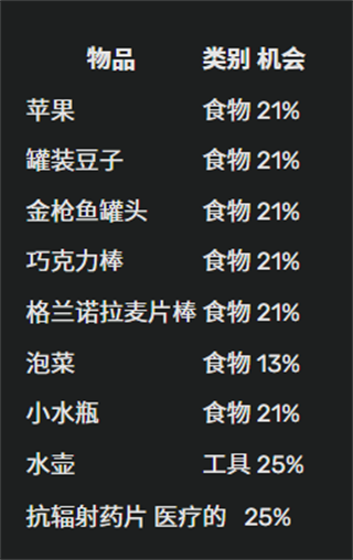 食品箱不要与普通战利品箱混为一谈,它通常刷新在辐射城镇周边或城镇内部。相比补给箱,食品箱不仅能稳定提供食物补充,还额外包含部分中期阶段可用的物资,对角色发展帮助更大。