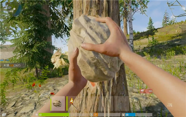 1、优先在野外采集基础资源,如石块和木材,尽快搭建一个安全的落脚点。