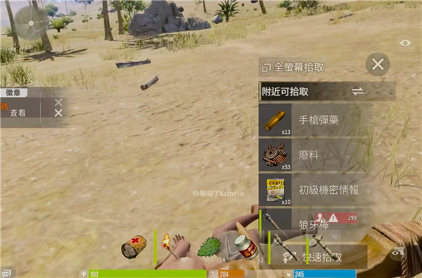 3、在野外遭遇其他玩家时,可选择主动出击,击倒对方后收集其携带的物资。