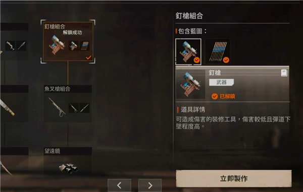5、在科技树中解锁钉枪配方,提升早期战斗能力。