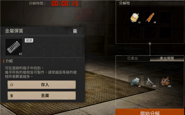 10、在前哨站将物资拆解为废料,为高级装备做准备。