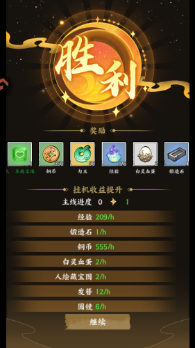 5、抵达终点节点,击败关底boss后玩家就可以结算关卡,领取奖励。