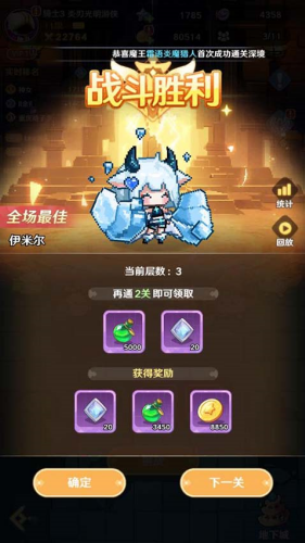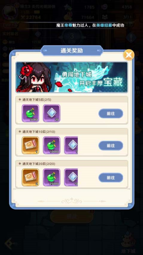 2、通过地下城的每一层都会获得一份通关奖励。