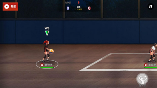 2、进入比赛后点击右下方的按钮可以进行发球,发球后可以控制角色拦网和举球。