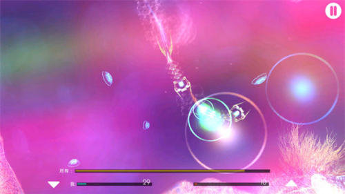 6、双指划开,带领小生物游向光影世界的深处7、双指合实,带领小生物向浅处游动