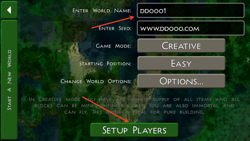 3、创建地图,输入名称、输入种子、游戏模式、出生点难度等。