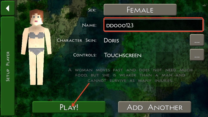 4、之后就可以创建角色了,点击下方的“play”开始游戏。