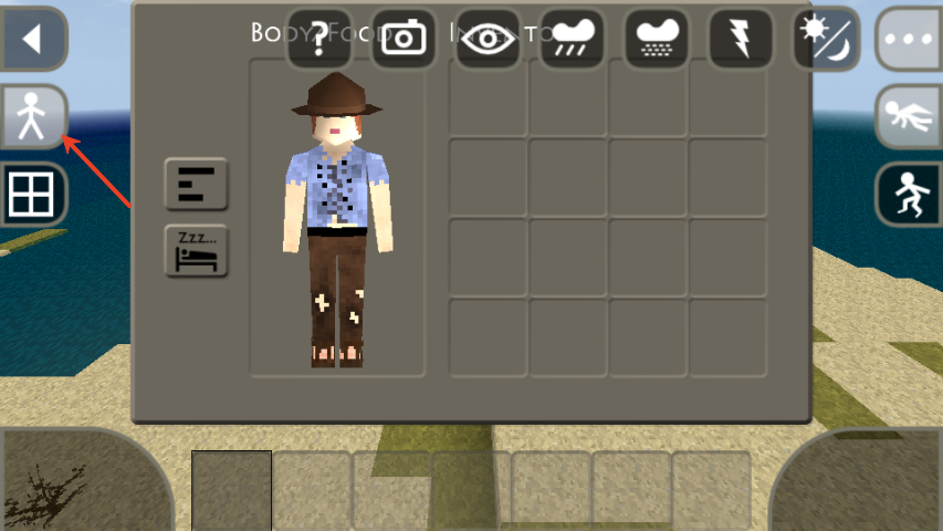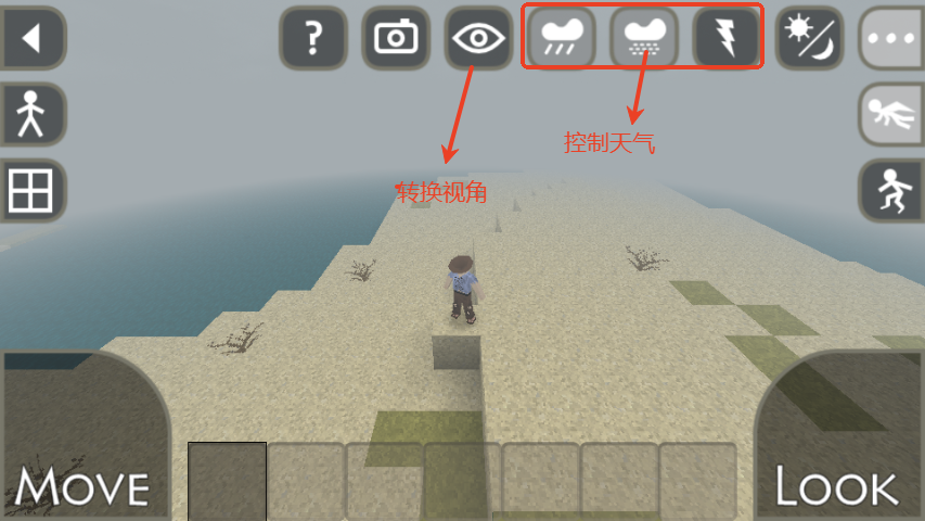 7、右上角还有控制天气的按键,如雨天、阴天、晴天等,眼睛图标可以调整游戏视角。