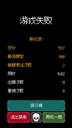 3、体验充满随机性,骷髅牌随机获得,每局游玩的卡牌组合均不同。