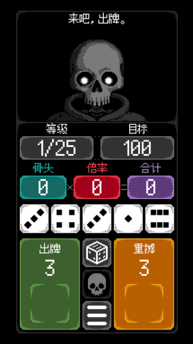 gameplay 围绕 “最大化激活骷髅效果” 展开,通过重掷骰子获取优势,强化卡牌组合的实战能力,从容应对关卡挑战。失败后无需从零开始,可保留部分已解锁内容,每一次重试都有新进展,激励玩家持续突破。