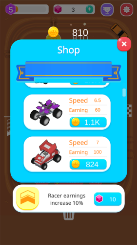 即使离线,赛道上的车辆也会持续为你赚取金币,实现财富的自动累积。