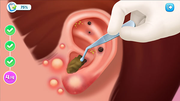 6、一系列操作结束后,耳朵就清理干净了,下面可以解锁医院的新区域了。