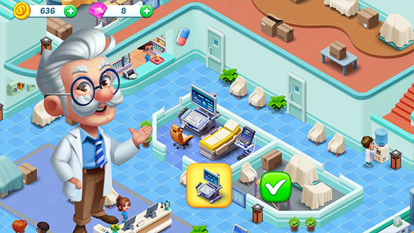 4、装饰您的医院,您可以设计不同风格的设备来创建您自己的医院。