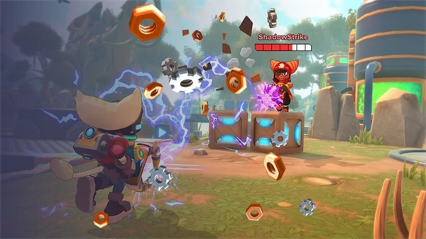 3、10位角色拥有专属终极技能,瑞奇机械臂抓取场景道具,叮当AI核心可反制敌人。
