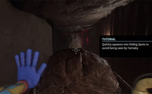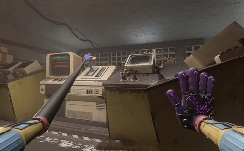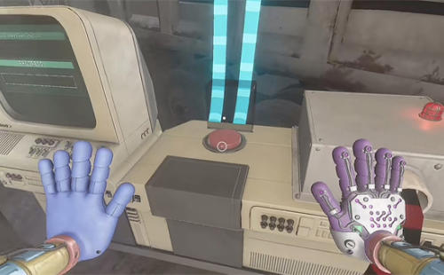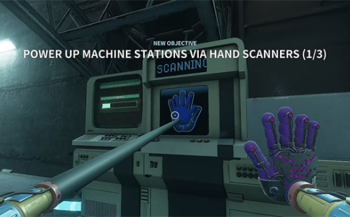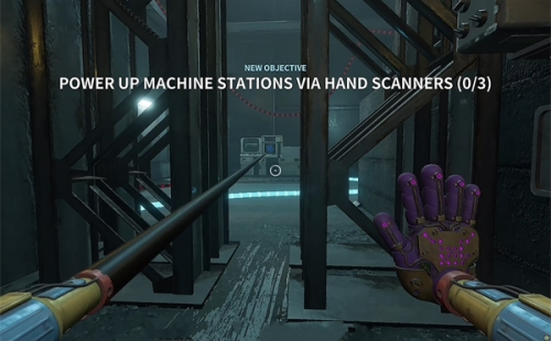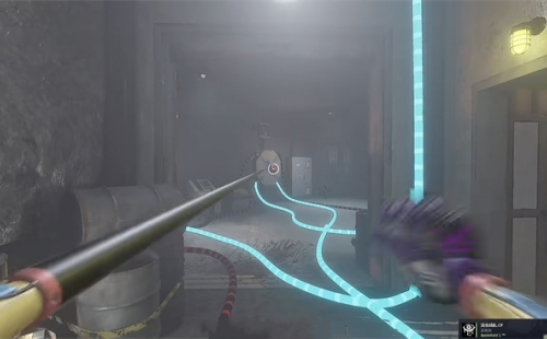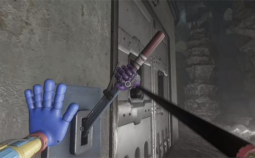 6、开门之后走里面还会有一个开关给他拉下来,往前走进去用蓝色手臂互动一下前面的开关,这里要触发三个开关才能有电流打通出口。